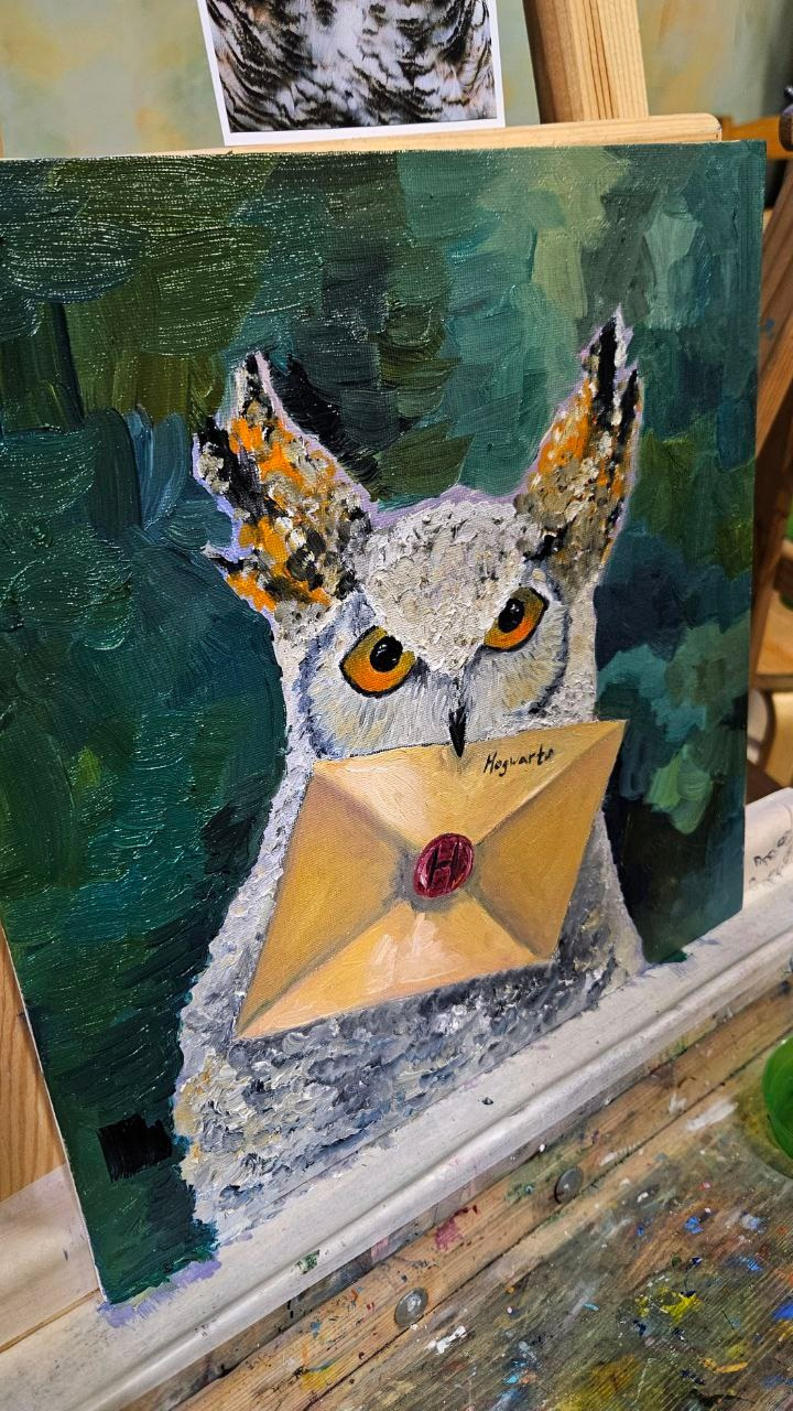 В воскресенье 28 января в 12.00 ч. и 15.00 ч. мы пишем маслом «Сову из Хогвардса», можно просто сову!